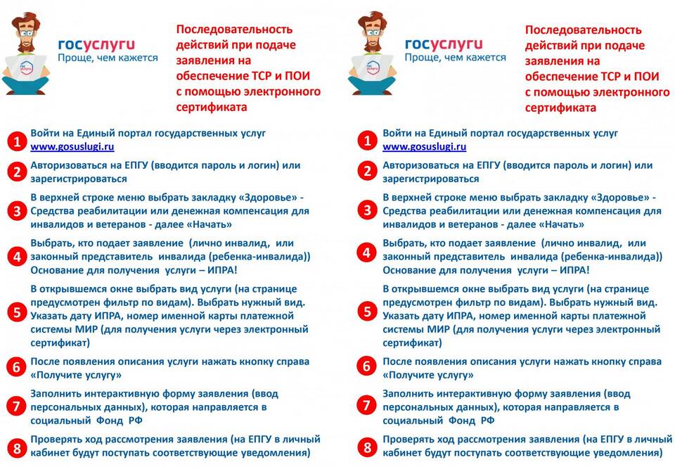 Граждане с инвалидностью могут оформить электронный сертификат на технические средства реабилитации (ТСР) через портал Госуслуги. Эта услуга позволяет получить необходимые реабилитационные средства без посещения учреждений.