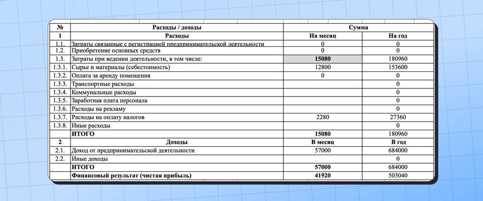 - Планирование обязательных расходов (инструменты, связь, реклама)