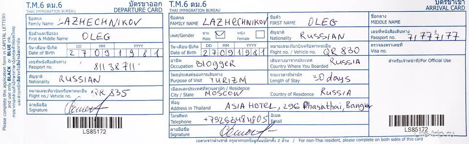 | Билеты | Подтверждение обратного билета или выезда из Таиланда |