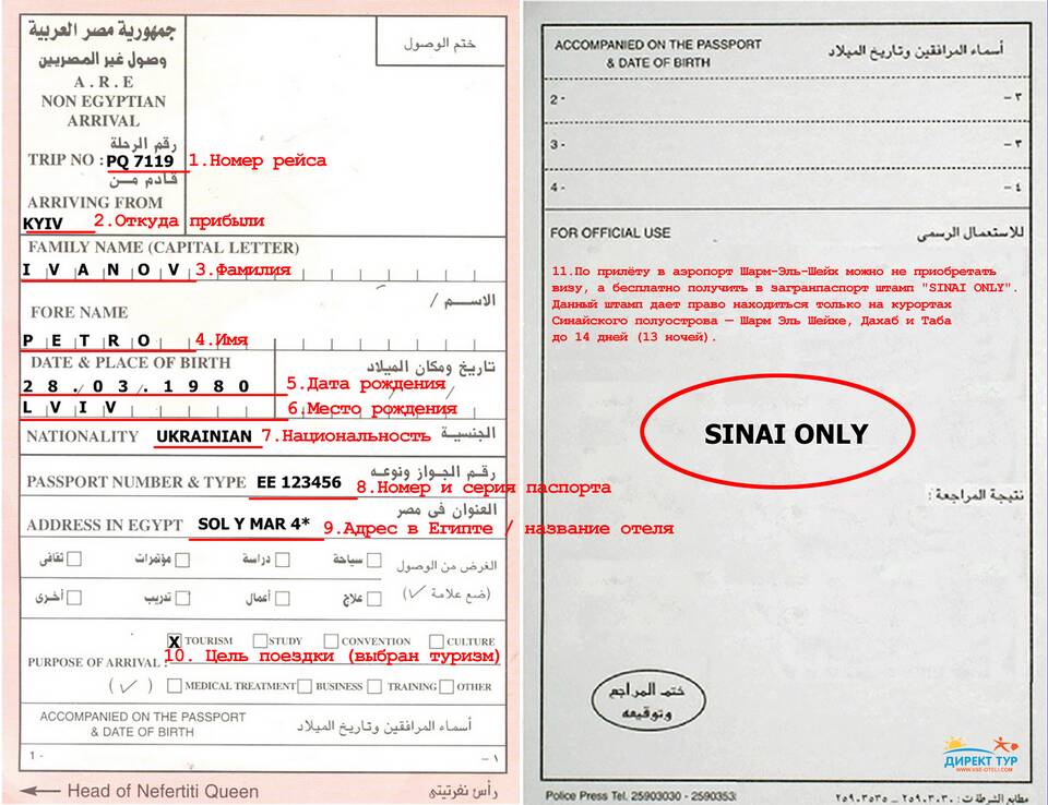 При въезде в Египет через Хургаду российские туристы могут получить визу на границе. Рассмотрим правильный способ заполнения миграционной карты и оформления визы.