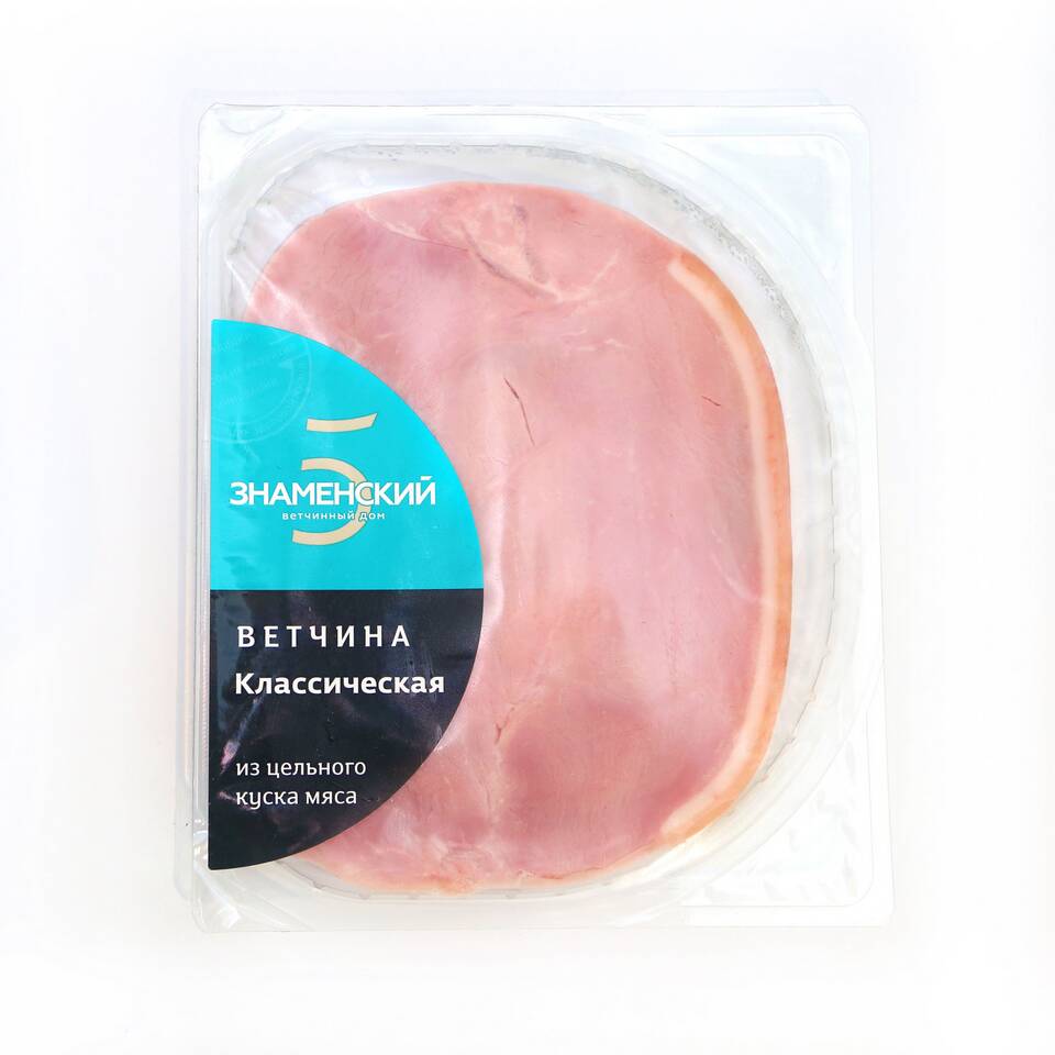 | Ветчина классическая | 200 г, 500 г | Из свинины, слабой солености |